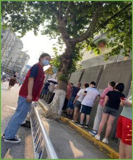 總經(jīng)理李富生親自帶隊,頂著酷暑,協(xié)助社區(qū)在交通路口卡點進(jìn)行來訪人員健康碼查驗、測溫登記工作,嚴(yán)格進(jìn)出管理、體溫檢測。
